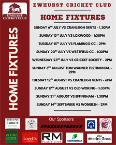 Come along to the club and support the boys for our remaining fixtures of the 2025 season. The bar will be open; enjoy a nice cool pint in the sun. Come on you Ewes!