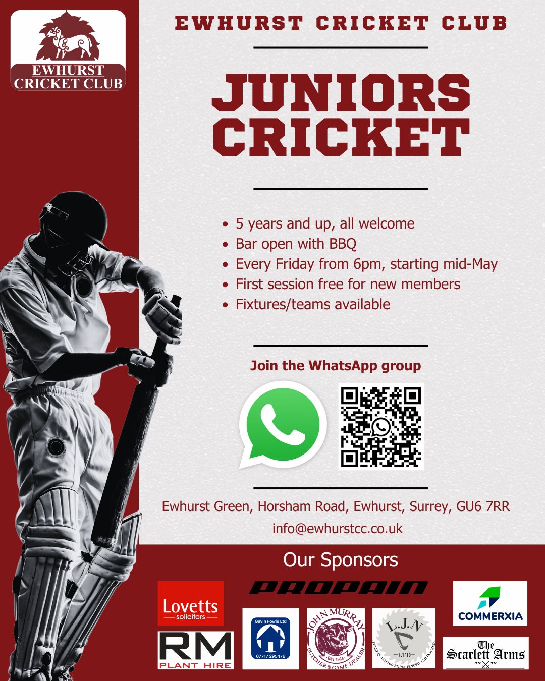 Come join Ewhurst CC Juniors. Have fun, and learn to play Cricket.